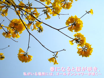 私が住んでいるところには、和名ナンバンサイカチで、英名「ゴールデンシャワー」という、黄色の花がたくさん咲いています。